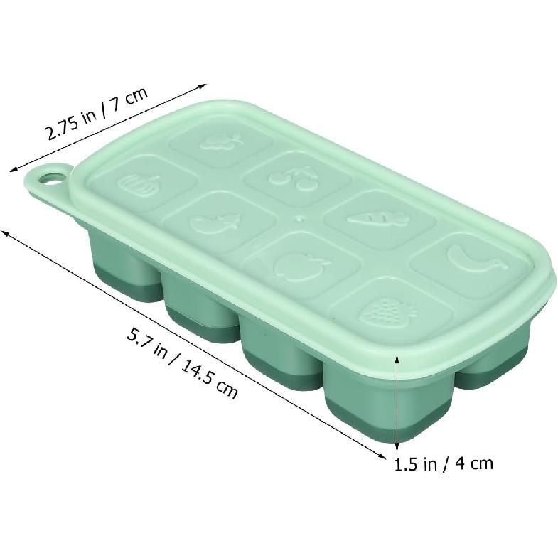 PRETYZOOM Silicone Ice Cube Tray with Lid, Easy Release Freezer Tray for Ice and Food Storage, 8-Cube Green Mold for Freezing Drinks, Juices, and
