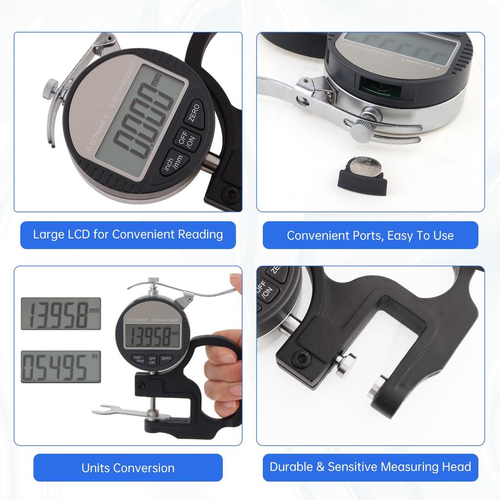 [Высокоточное измерение] Цифровой микрометр Smgda может измерять толщину до 12,7 мм с высокой точностью до 0,001 мм приращения. Он идеально подходит для точного определения толщины деталей и материалов.