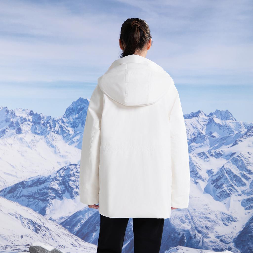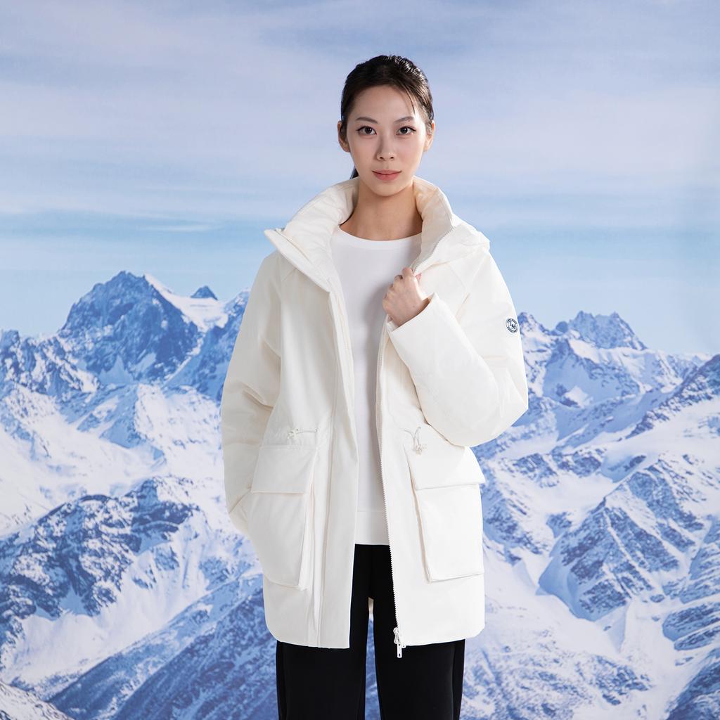 Li-Ning Теплая однотонная куртка-пуховик средней длины с капюшоном, женская верхняя одежда AYMV296-4