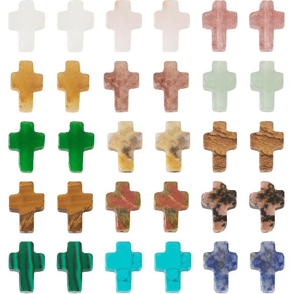 30 шт. Бусины-крестики из драгоценных камней Маленькие крестики Бусины из кристаллов и камней Крестики из бирюзы Маленькие крестики Подвески-распятия для браслета или ожерелья на Пасху