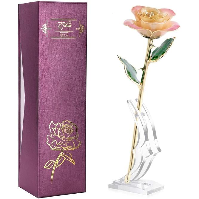 ТЕКСТУРА И ЯРКИЕ ДЕТАЛИ -- Каждая роза тщательно отобрана из розария, на изготовление одной 24-каратной золотой розы уходит более 4 дней ручной работы и 65 этапов, длина 11-12 дюймов, вы можете четко видеть текстуру цветка, пластиковые цветы не обладают этой особенностью, они дешевы, они не могут сравниться с 24-каратной розой, наш 24-каратный золотой цветок розы очень особенный и драгоценный.