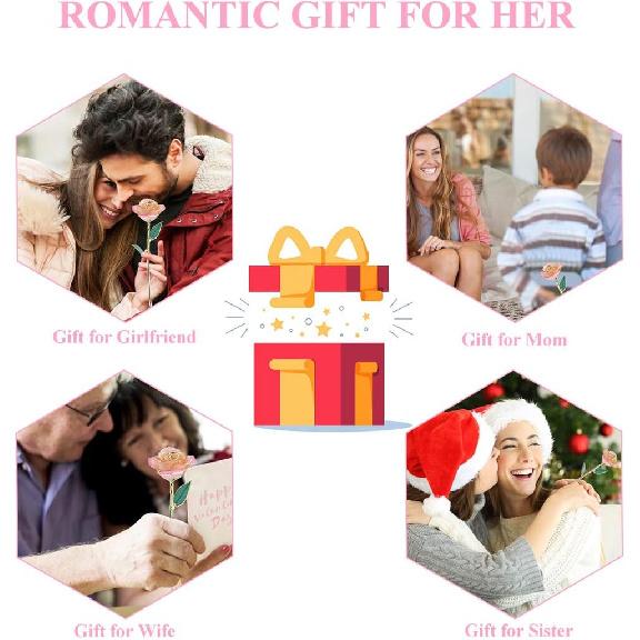 НАДЕЖНО ЗАЩИЩЕННАЯ ЛЮБОВЬ -- Роза символизирует любовь, а роза из 24-каратного золота олицетворяет Вечную любовь, Каждая подарочная коробка имеет сертификат и прозрачную подставку для розы, Внутри витрины есть углубления для розы, каждая роза деликатно упакована в изысканную подарочную коробку, чтобы гарантировать сохранность хрупкого предмета.