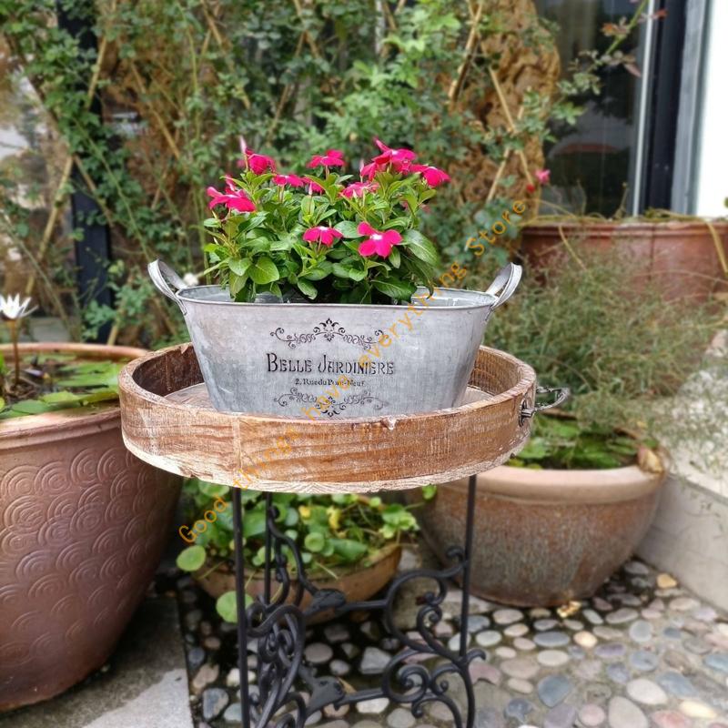 Металлическое ведро-кашпо с двойными ручками, железный цветочный горшок, металлический поднос для хранения 55KF