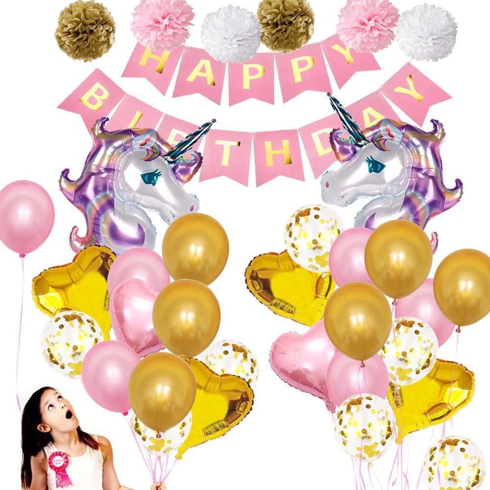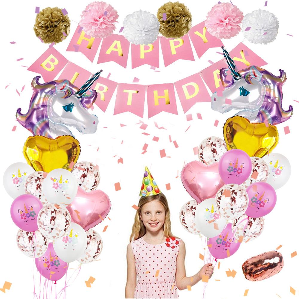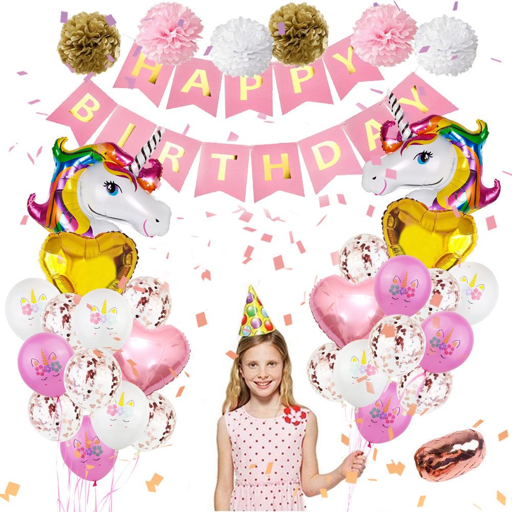 Unicorn Theme Party Decoration Balloon Paper Flower Ball Set Unicorn Balloon Fishtail Flag Birthday Party Decoration