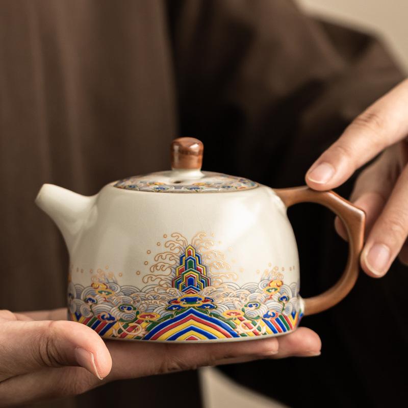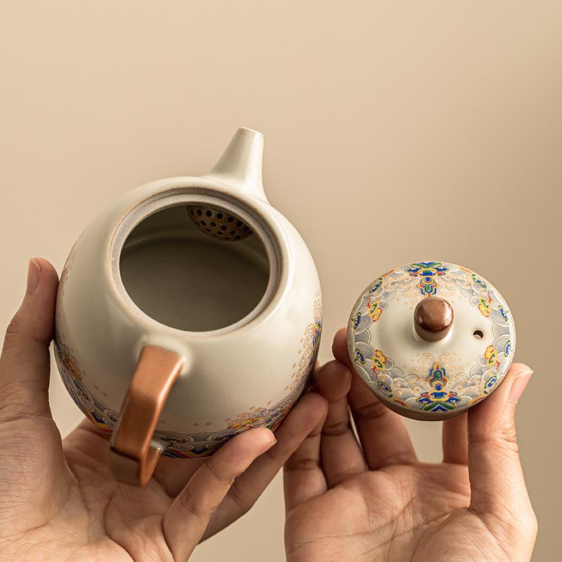 Бежевый чайник Жуяо, одинарный чайник для заваривания чая, бытовой керамический чайник большой емкости в стиле легкой роскоши, высококлассный новый чайный сервиз для чая Кунг-фу