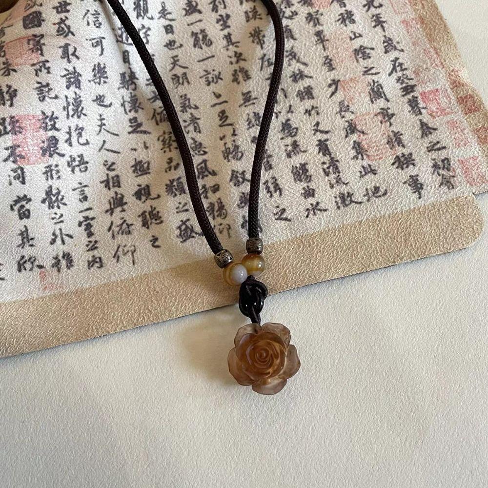 Chain Flower Beads Necklace Ethnic Round Pendant Necklace Trendy Camellia Stacking Necklace Couple