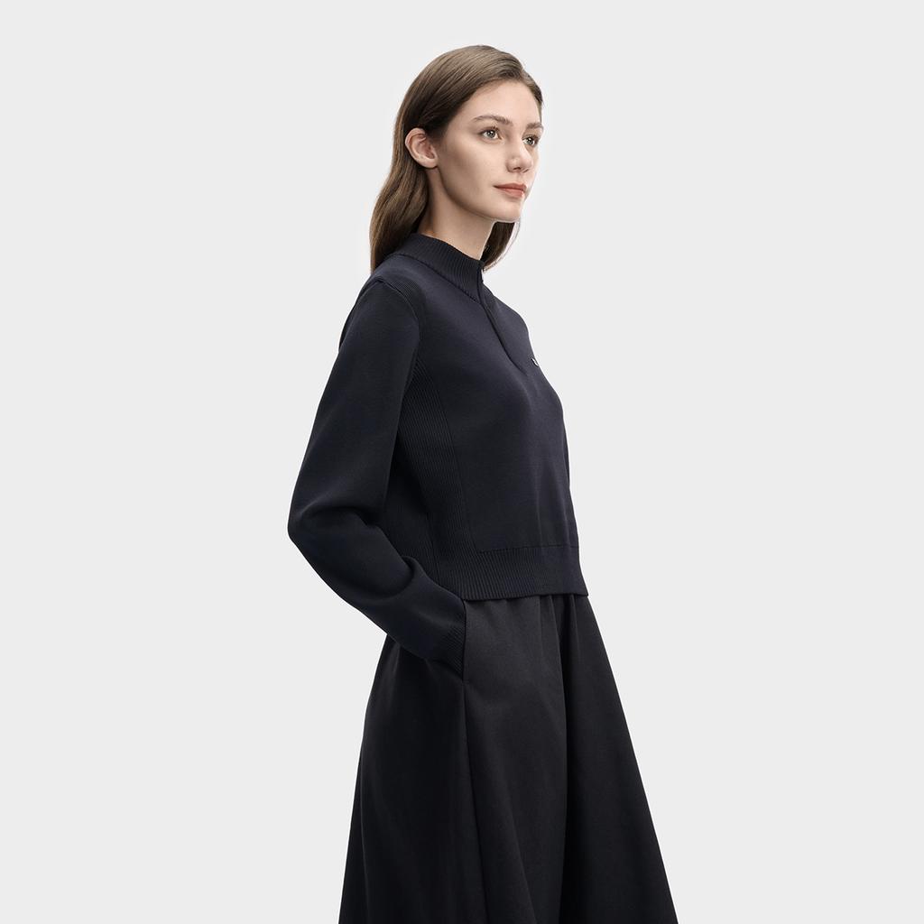 Fila Белый Модный Простой Классический Повседневный Универсальный Удобный Свободный Платье с длинным рукавом на молнии до середины груди Женские платья Легендарно-синий F11W613302FNV