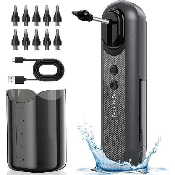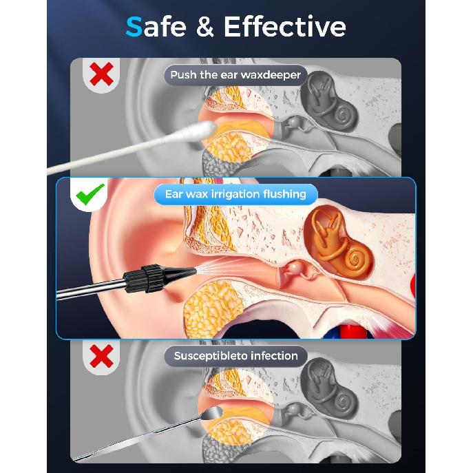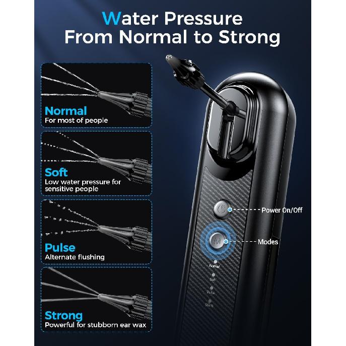 Безопасный и эффективный набор для удаления ушной серы: Разработанный для мягкой, но эффективной чистки ушей, этот набор для удаления ушной серы имеет четыре настраиваемых режима давления, которые вымывают скопившуюся ушную серу, не вызывая дискомфорта или травм.. Идеально подходит для тех, кто ищет надежное средство для удаления ушной серы для взрослых, этот электрический очиститель ушей предлагает более безопасную и эффективную альтернативу традиционным методам.. (Чаевые: Пожалуйста, проконсультируйтесь с врачом перед использованием, если у вас чувствительные уши или ранее имелись заболевания ушей.)