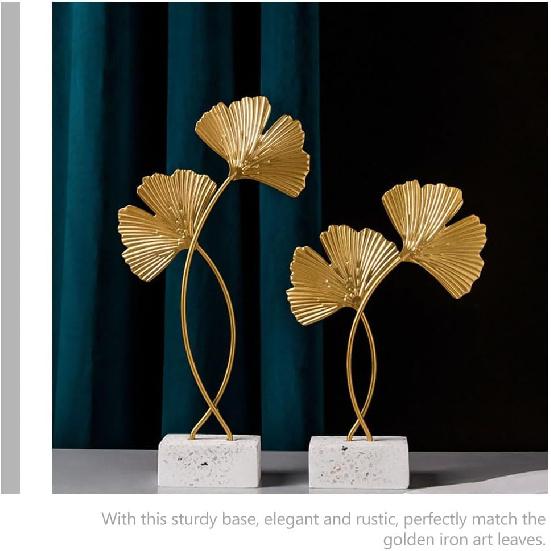 Cabilock 2 шт. Золотая статуэтка листа гинкго Золотая металлическая скульптура листа Металлическая железная скульптура листа Фигурка Настольное украшение для дома для спальни с деревянной основой