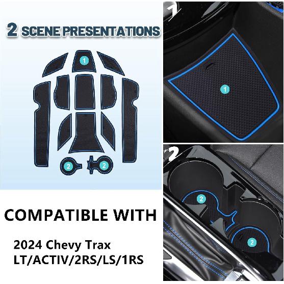 【High Quality Material】The fashion car slot mat cup pad compatible 2024 2025 Chevy Trax,Trax LT,Trax ACTIV,Trax 2RS,Trax LS,Trax 1RS.This 2024 2025 Chevy Trax anti slip cup holder inserts 14PCS/Sets is made of high material, eco-friendly and durable. Withstands high temperatures.NOTE:Fits all 2024 2025 chevy trax configurations, including wired and wireless configurations,power moonroof ect..