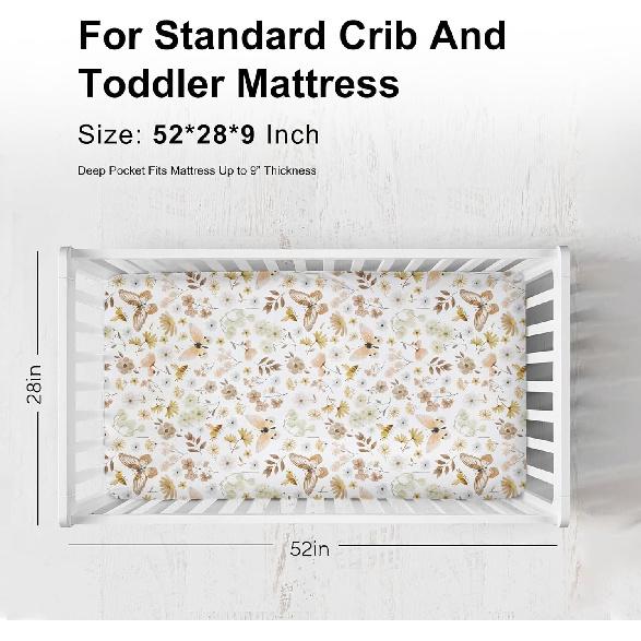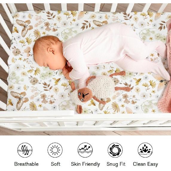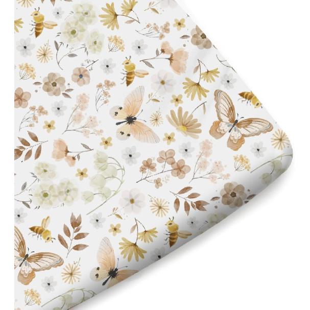 Винтажные бабочки Бохо Полевые цветы Детские простыни для кроватки Мальчик Девочка 52"x28" Акварельные пчелы Бабочки Весенний цветочный чехол для матраса кроватки Мягкий Дышащий
