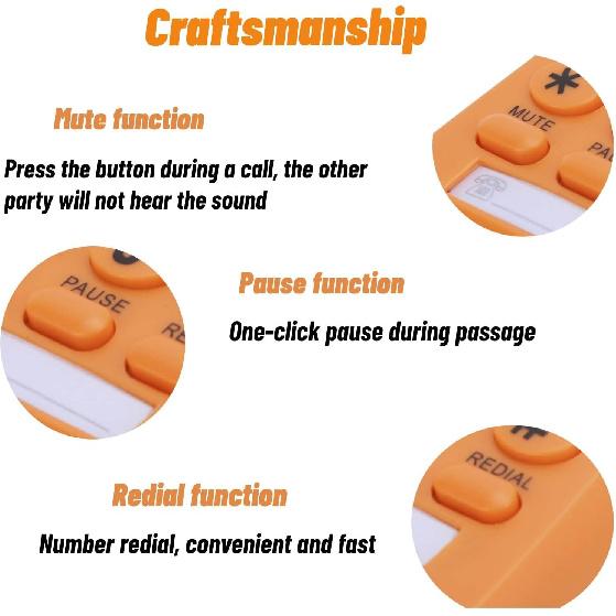 ФУНКЦИОНАЛЬНОСТЬ: Многофункциональный стационарный телефон имеет функции отключения микрофона, повторного набора, паузы и ночной подсветки.. Он имеет сильную практичность. Помимо того, что это коммерческий телефон, это также незаменимый стационарный телефон для пожилых людей с ограниченной подвижностью.