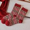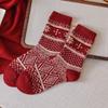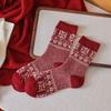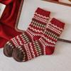 Новогодние красные носки, носки с узором «Фэр-Айл», осенне-зимние утолщенные шерстяные носки до середины икры, ромбовидные ретро