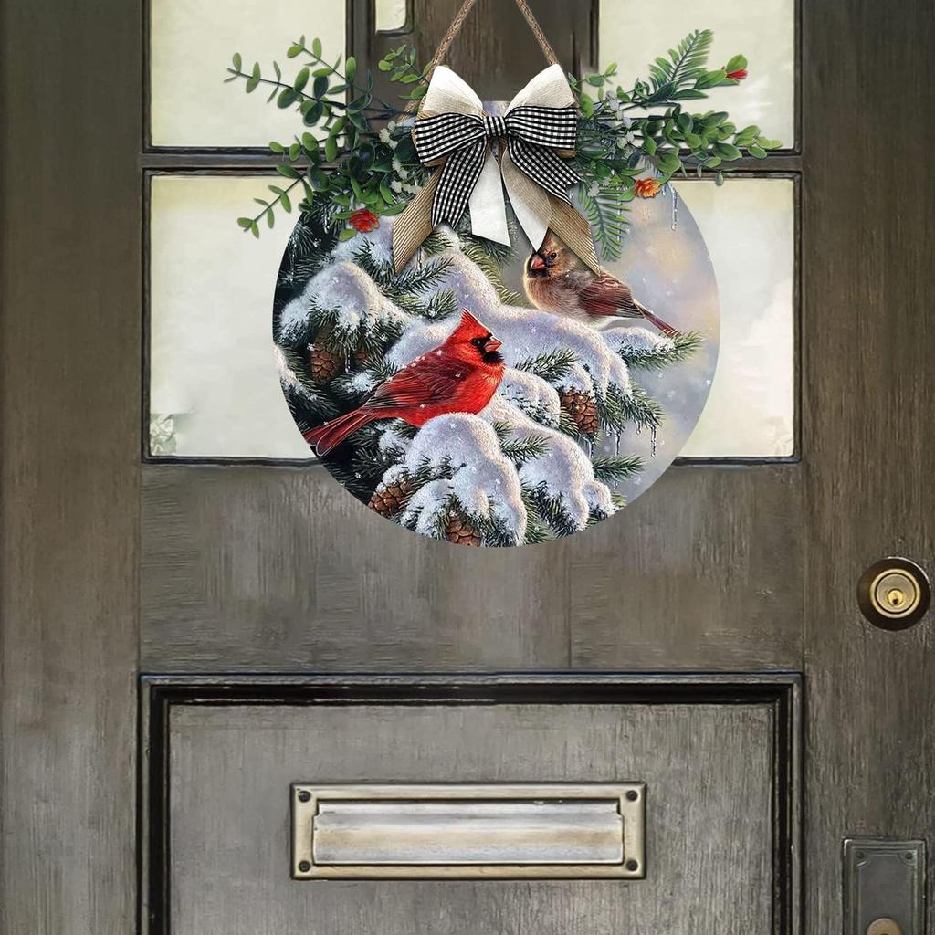 Aowotu Зимние венки на дверь с красными птицами для входной двери снаружи, круглые подвесные таблички с веткой кардинала для домашнего декора, праздничного крыльца, стены, фермерского дома, для использования в помещении