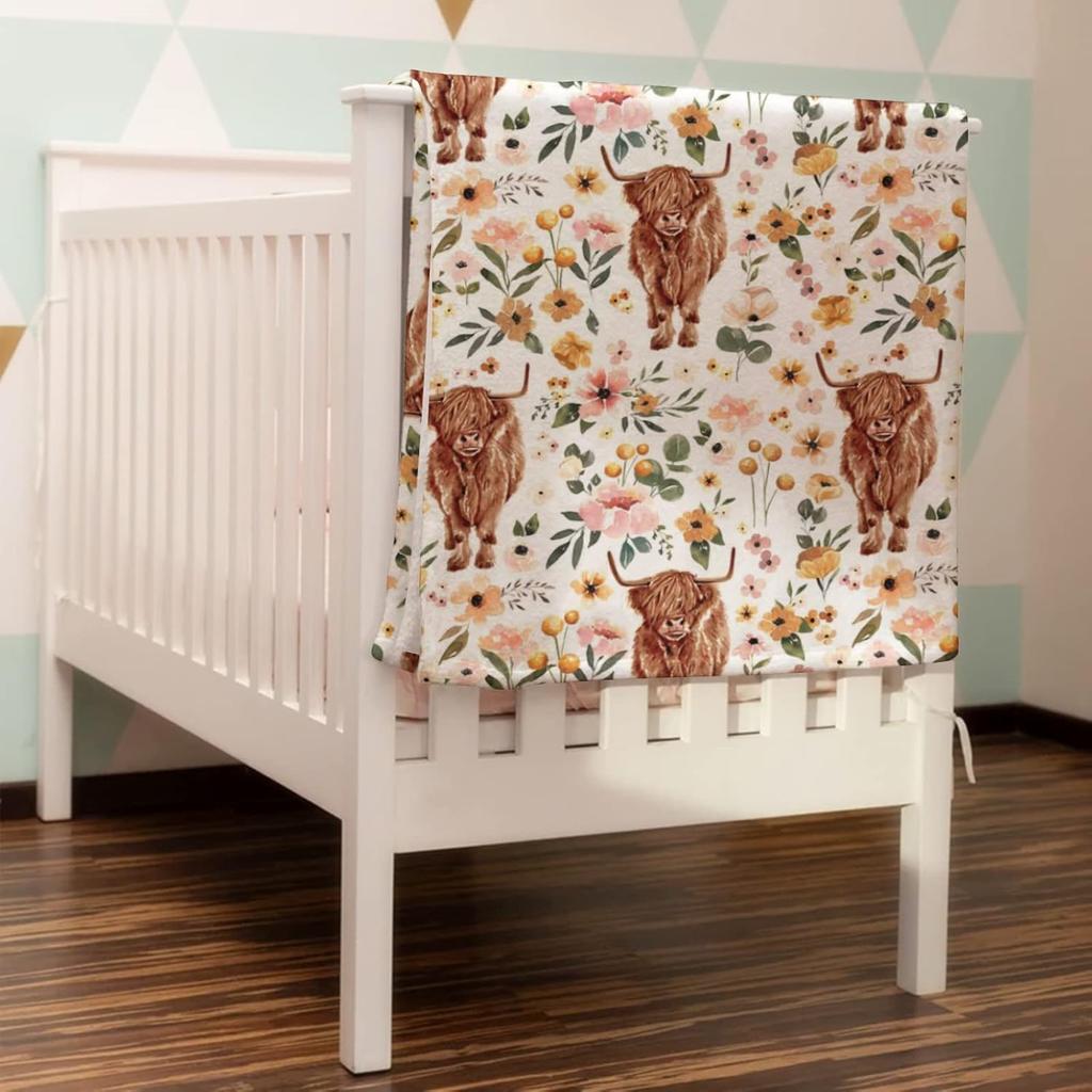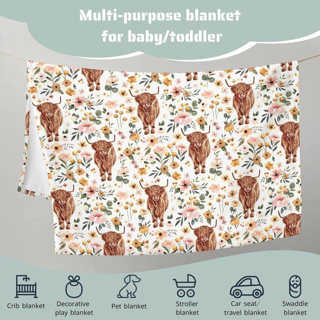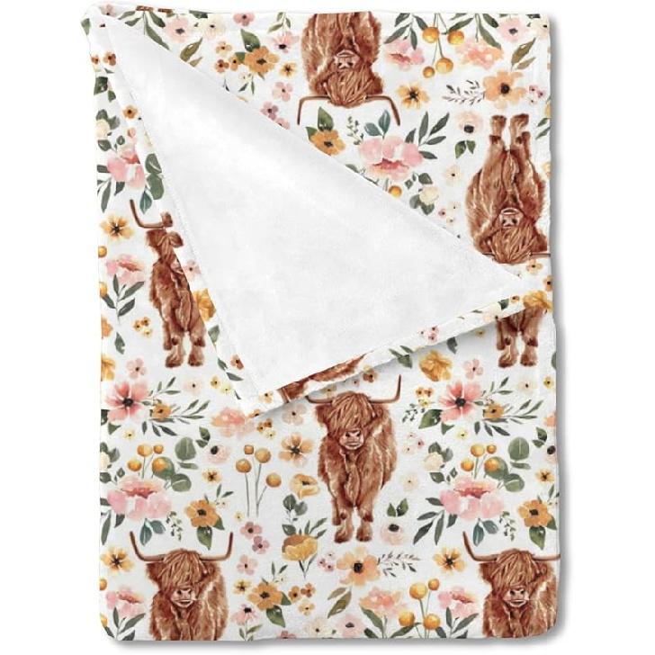 Название модели: Шотландская корова Бохо Ретро Цветочный Плед для новорожденной девочки