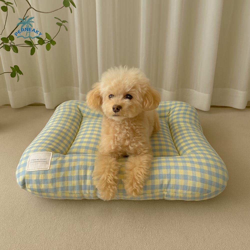 Милая теплая подстилка для собаки, нескользящая, макарон, клетчатая, подушка для собаки, мягкий удобный коврик для кошек и собак