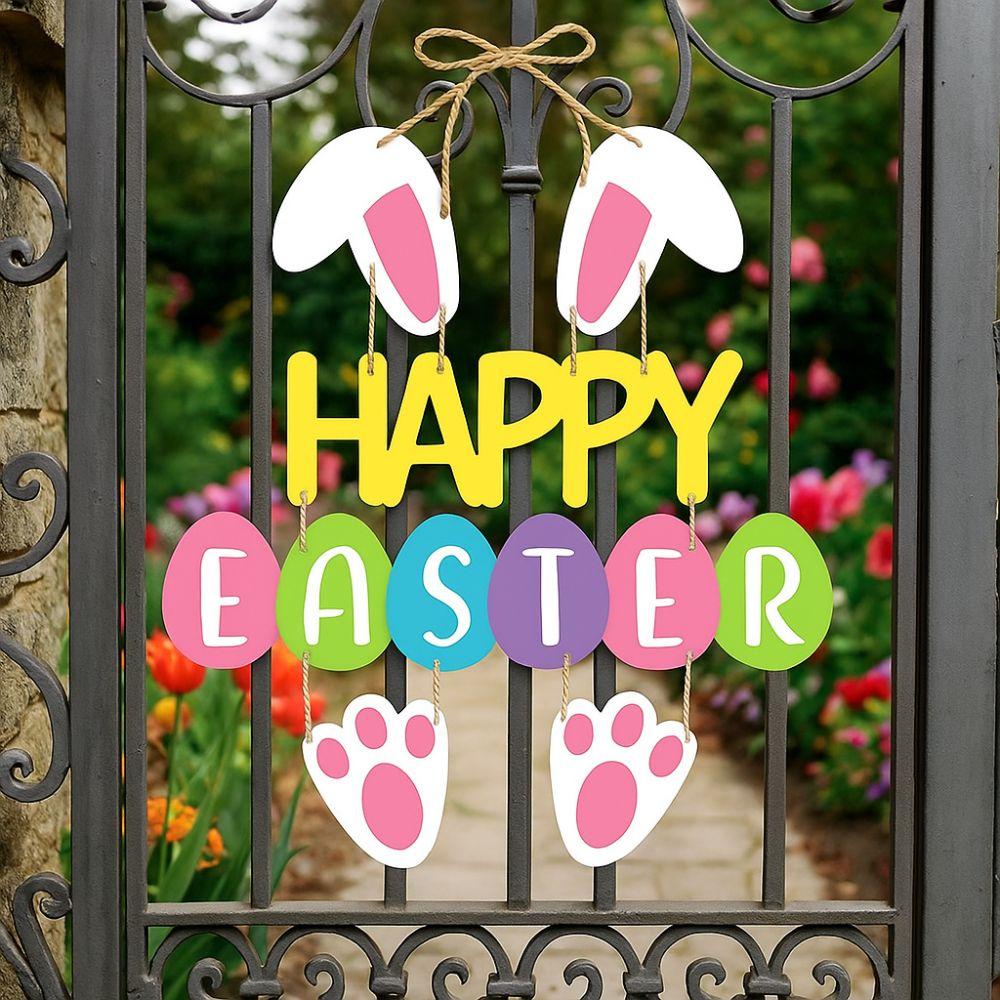 Photo Props Cartoon Easter Door Hanging Colorful Paper Bunny Egg Decoration Handmade Rabbit Door Wall DIY Pendants Party Favors