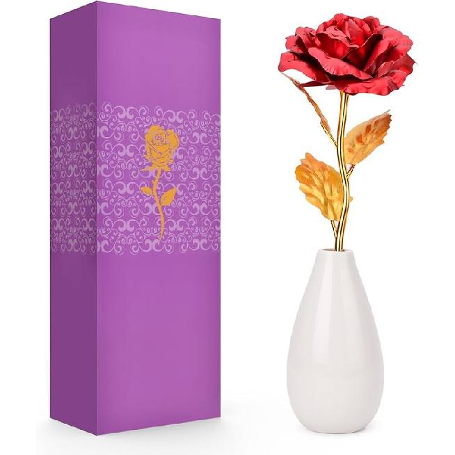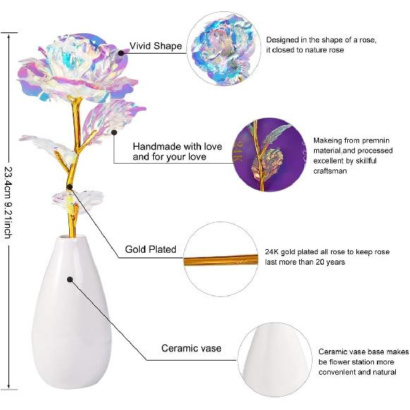 🌹【 Юбилейные подарки】лепесток и лист сделаны из пластика, цветочный стержень сделан из полиэтилена с покрытием из золотой фольги. И подарите керамическую вазу, чтобы вы могли поставить ее где угодно. Подарок поставляется в роскошной подарочной коробке с узором «Розы» на поверхности.. В коробке ваза и красивые розы. Ваза зафиксирована пенопластом, поэтому не беспокойтесь о том, что она разобьется.. Размер коробки:10.55"×3.86"×2.48".