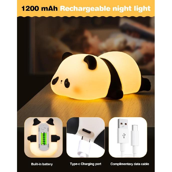 Ночник Recolte Panda для детей - 3 уровня яркости, перезаряжаемая светодиодная силиконовая лампа | Мягкий ночник с таймером | Безопасный ночник для ребенка