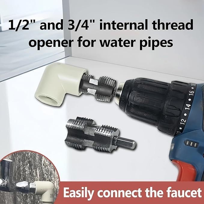 Комплект для нарезания резьбы для труб ПВХ, совместимый с электрической дрелью, плашки 1/2'' 3/4'' 1'', инструмент для нарезания внутренней и внешней резьбы для труб ПВХ, комплект для повторной нарезки резьбы для сантехники
