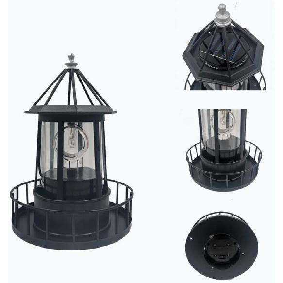 anso Solar Powered LED Rotating Lighthouse Night Light Outdoor Garden Home Decor Lamp (Black)