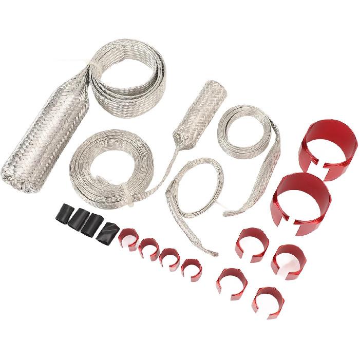 Комплект чехлов для шлангов из нержавеющей стали, универсальный комплект оплетки шланга радиатора для экстремальных температур для автомобиля (красный)
