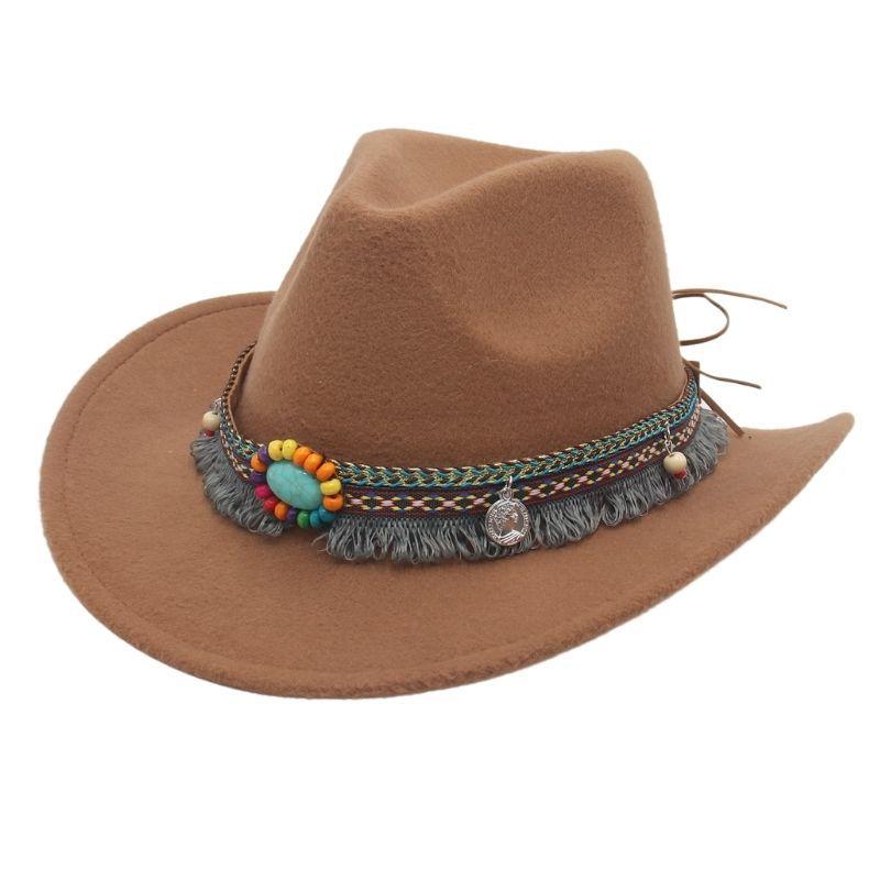 Ювелирные аксессуары Шляпа западного ковбоя Шляпа-цилиндр меньшинства тибетская Шляпа из войлока с загнутыми полями Прерий Джазовая шляпа — купить товар онлайн с бесплатной доставкой по всему миру!