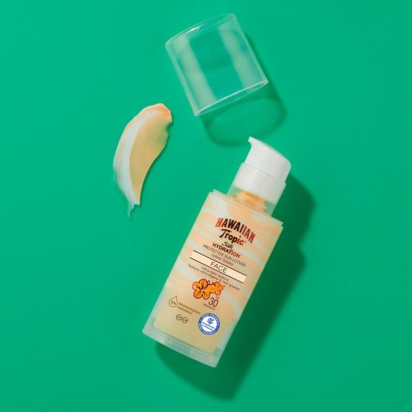 Hawaiian Tropic Silk Hydration Face Sunscreen Lotion SPF30, formulated specifically for your face, is perfect for daily skincare. This lightweight, breathable formula feels like it's barely there! It has an ultra-light texture that feels light and smooth on skin, leaving a weightless matte finish so your skin can breathe. The unique double-ribbon moisturizing formula provides 12 hours of hydration. Hawaiian Tropic Silk Hydration Weightless Face Sunscreen Lotion is hypoallergenic, oil-free, and non-comedogenic. The compact, portable bottle features an easy-to-use airless pump for convenient application all day long! Hawaiian Tropic Weightless Hydration sunscreens are dermatologically tested and made with island-inspired botanicals and ingredients like papaya, mango, passion fruit, plumeria, guava, and aloe for skin-loving suncare you can trust. In addition to caring for your skin with broad-spectrum UVA and UVB protection, Hawaiian Tropic also helps care for the planet by formulating cruelty-free sunscreens free of oxybenzone and octinoxate. Benefits: Weightless formula feels like it's barely there; 12-hour hydration; Hypoallergenic, oil-free, and non-comedogenic; Dermatologist-tested; Water-resistant—up to 80 minutes; Iconic Hawaiian Tropic Scent—this tropically scented sunscreen celebrates Hawaii's island botanicals; Free of oxybenzone and octinoxate; PETA Certified; Cruelty-Free—we never test on animals; Broad-spectrum UVA and UVB protection.