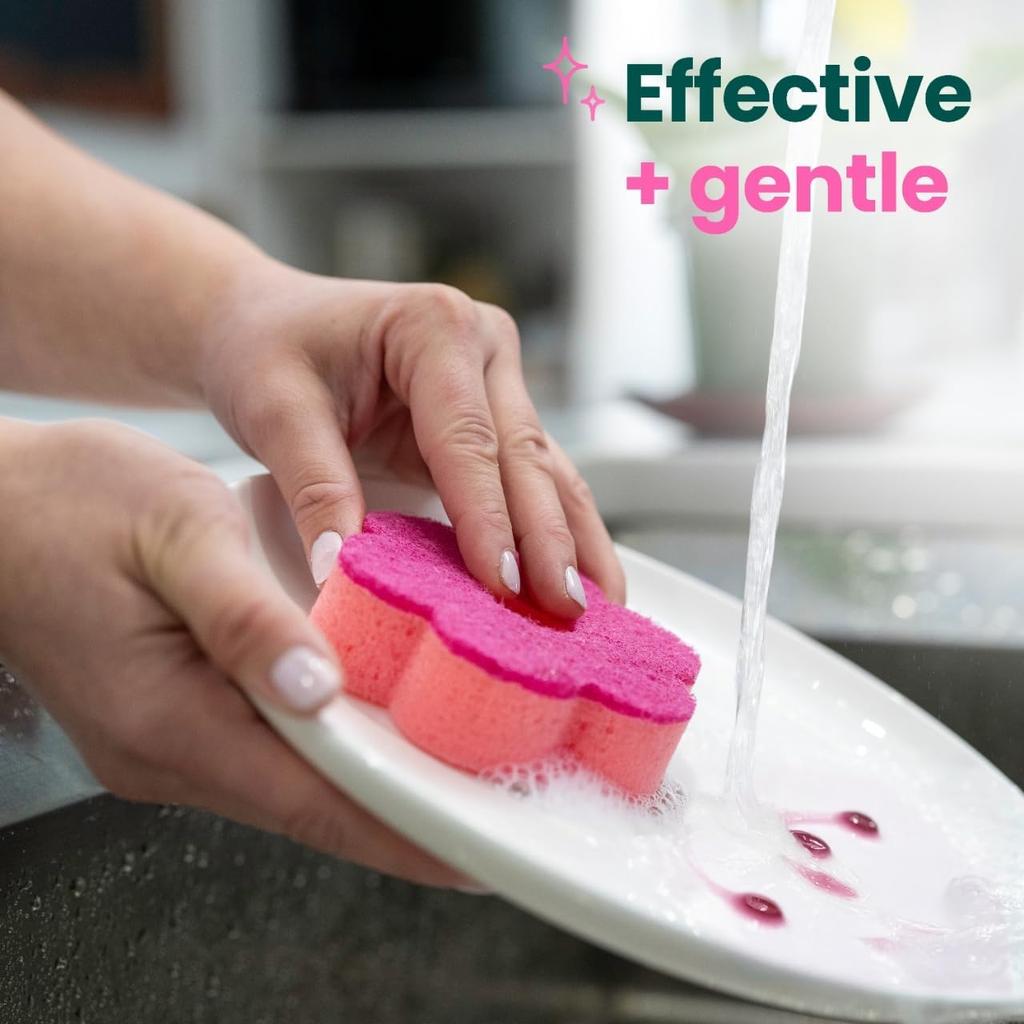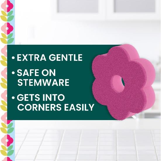 Scotch-Brite Brite Blooms Collection, 1 Extra Gentle Flower Shaped Kitchen Sponge, 3 Pop Up Dish Sponges That Expand with Water, and 4 Dobie