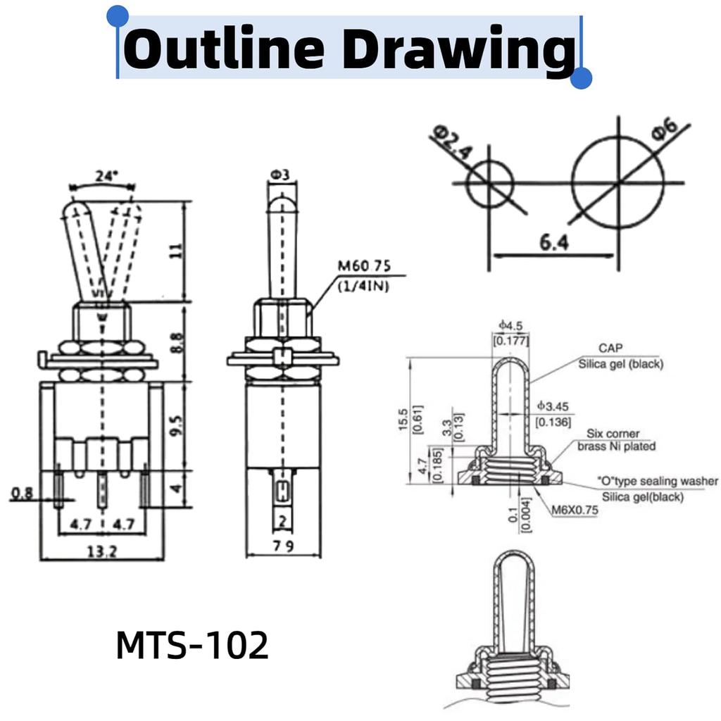 12PCS Mini Toggle Switch SPST 6A 125V Miniature ON/ON 3 Pin 2 Position Micro Rocker Switches 6 Amp 125 Volt MTS-102