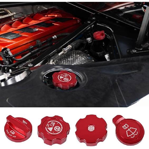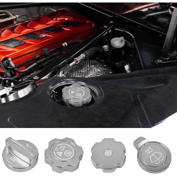 4Pcs Engine Oil Cap Brake Fluid Cap Wiper Washer Cap Radiator Cap Cover Trim Set, Aluminium Alloy Engine Oil Cap Cover Decorative Set Accessories for