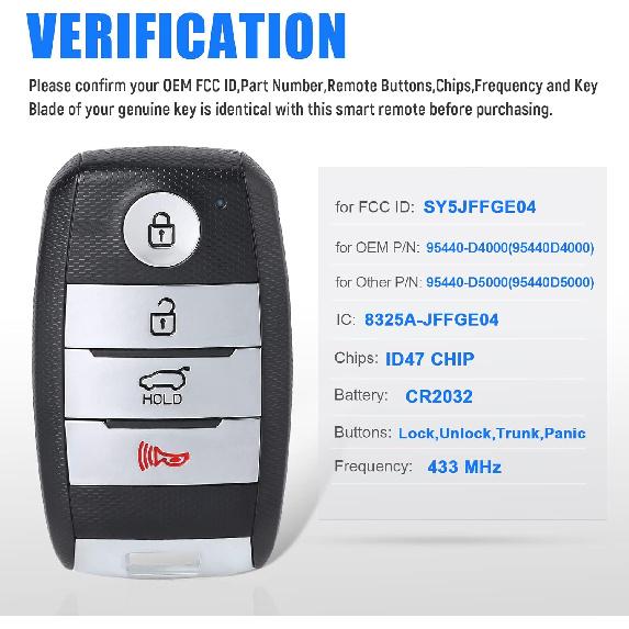 Замена брелока для ключа автомобиля для Kia Optima 2016 2017 2018 2019 2020(Идентификатор Федеральной комиссии по связи:SY5JFFGE04 P/N:95440-D4000) 4 кнопки