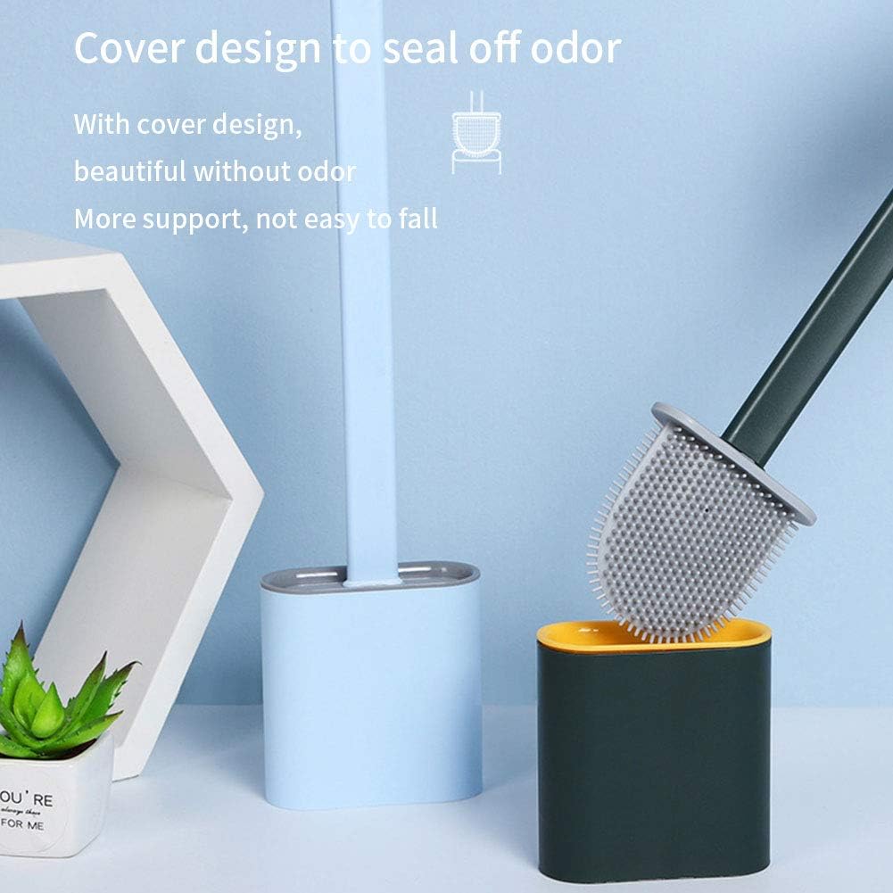 Revolutionary Silicone Flex Toilet Brush with Holder,No-Slip Long Handle Toilet Brush with Holder, Standing Holder & Wall Mounting Cleaning Brush Set