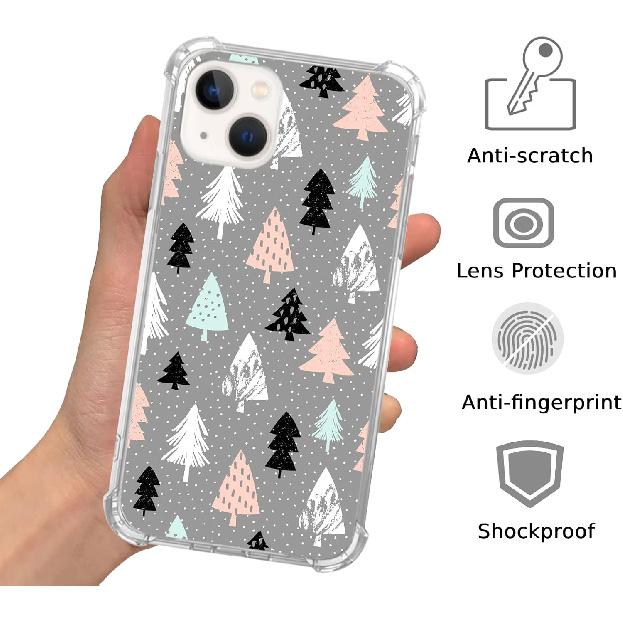 Pink White Black Christmas Trees Case Compatible with iPhone 13, Winter Christmas Cartoon Case for iPhone 13, Cool TPU Bumper Phone Case Cover