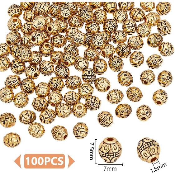 UNICRAFTALE Около 100 шт. Тибетские бочкообразные бусины 7 мм Античное золото Бусины-разделители рондель с большим отверстием Бусины для изготовления браслетов