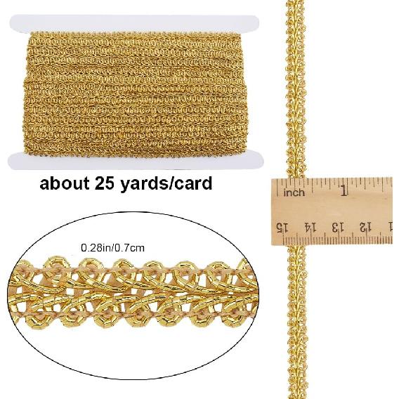 GORGECRAFT 25 ярдов Металлическое кружево Отделка Вышитая Золотая Плетеная Тесьма Сороконожка Кромка Лента Аппликация Гимп Тканая Кромка Отделка для Шитья Рождество Дом