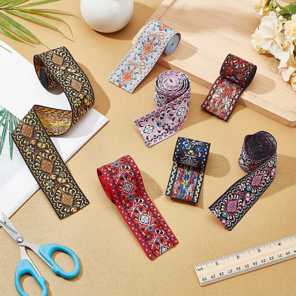 Размер ленты: Вы получите 7 рулонов жаккардовой ленты с цветочным узором, все в пакете, общей длиной около 14 ярдов, по 2 ярда каждый рулон, и шириной 4 см/1,57 дюйма. Разнообразные цвета и достаточная длина для удовлетворения ваших различных потребностей