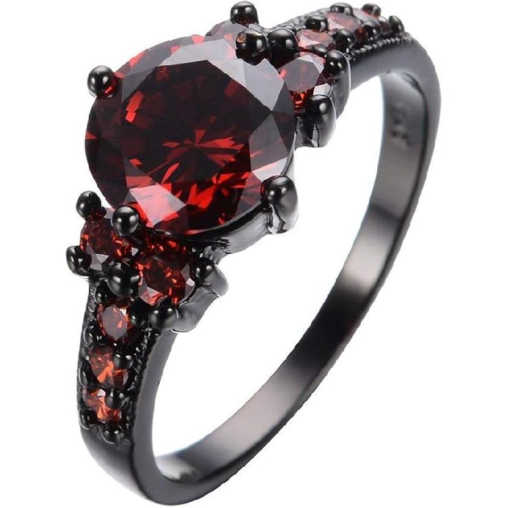 Yuren Винтажное кольцо-обещание с рубиново-красным гранатом из 10-каратного золота, заполненного черным золотом, размеры 6-10 (Размер 9)