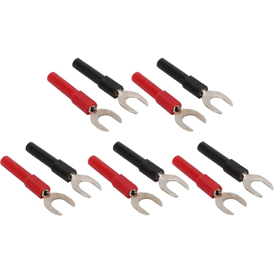 10pcs Y Spade Plug, Red Black Plated U Fork Spade Connector with 4mm Jack Copper Banana Socket for Multimeters Electronic Applications, Support 30V