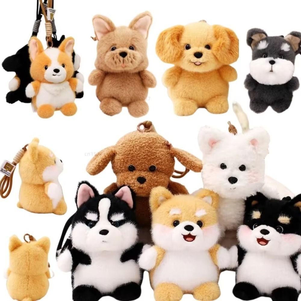 Schnauzer Dog Plush Pendant Stuffed Animal Dog Stuffed Keychain Husky Corgi Plush Kids Toy
