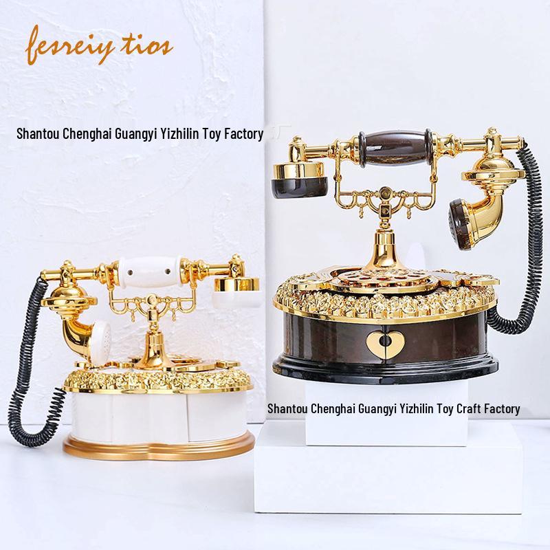 Yi Zhi Lin Ретро Европейский Телефон с Поворотным Диском Музыкальная Шкатулка - Винтажный Домашний Декор Дисплей
