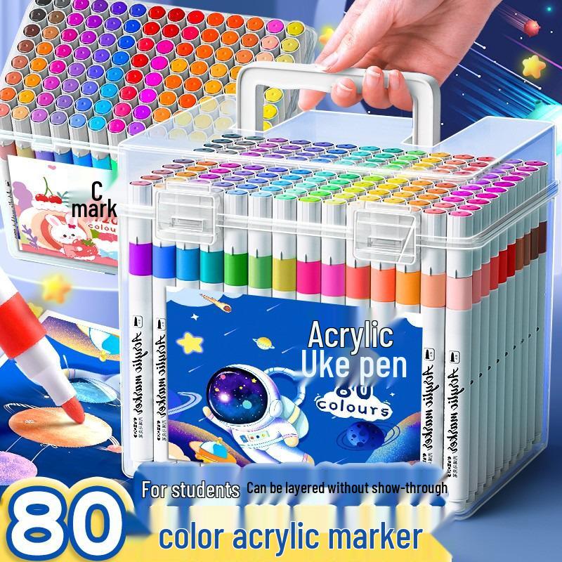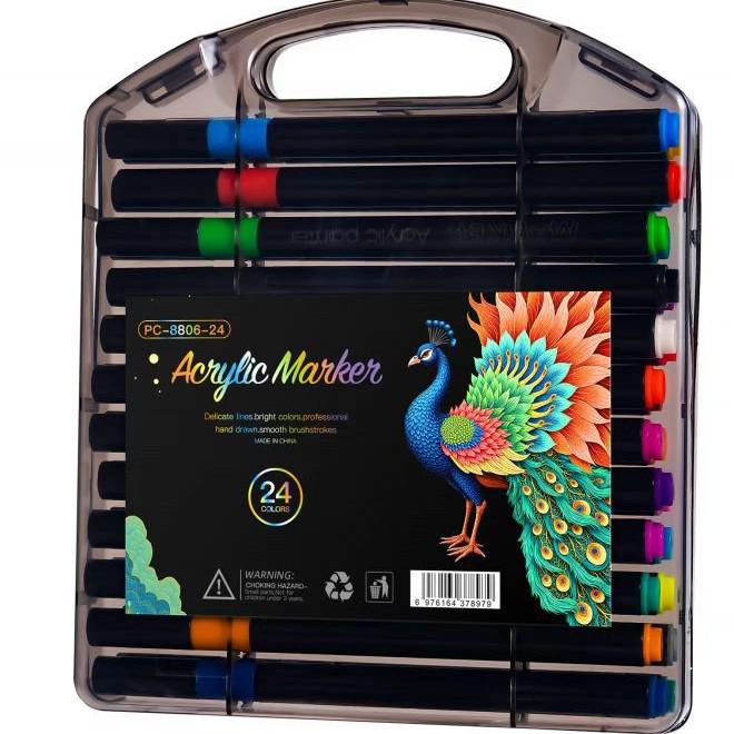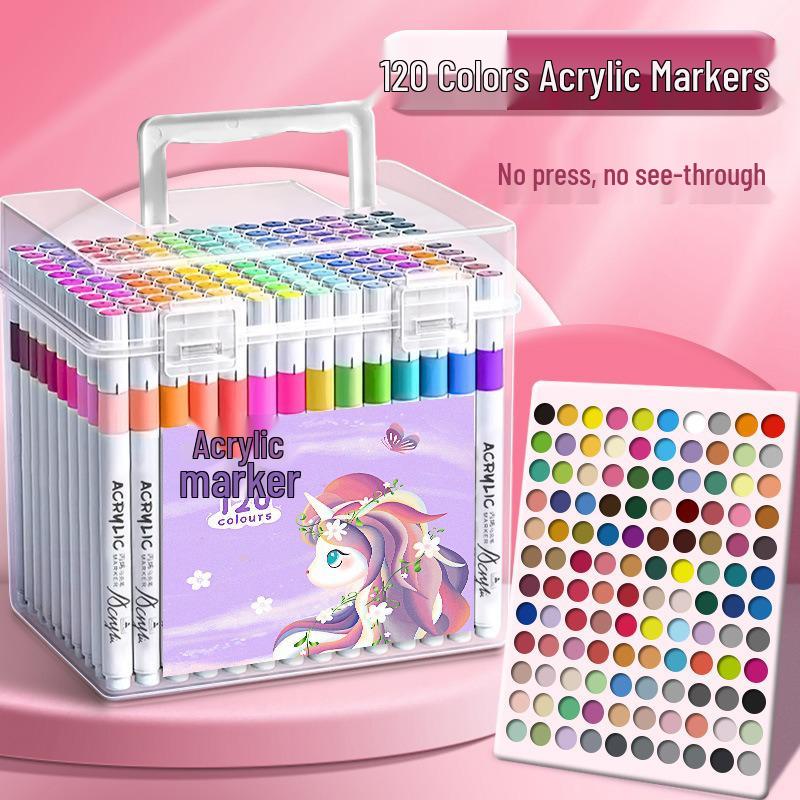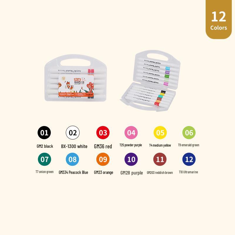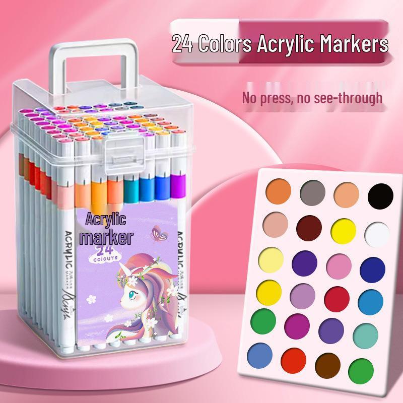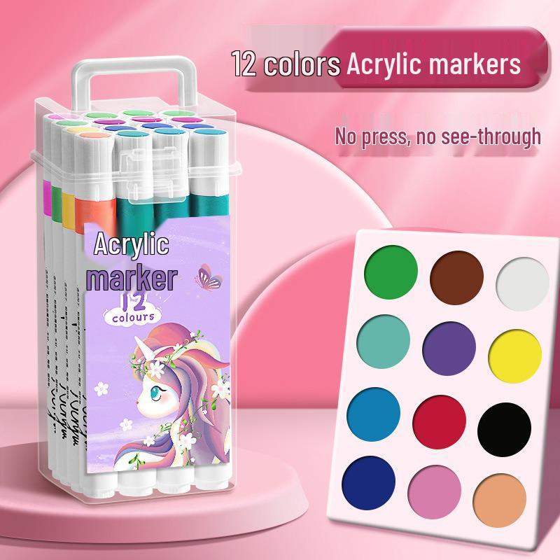 Детский набор акриловых акварельных маркеров - Водостойкие, Непрозрачные, Накладывающиеся цвета в подарочной коробке