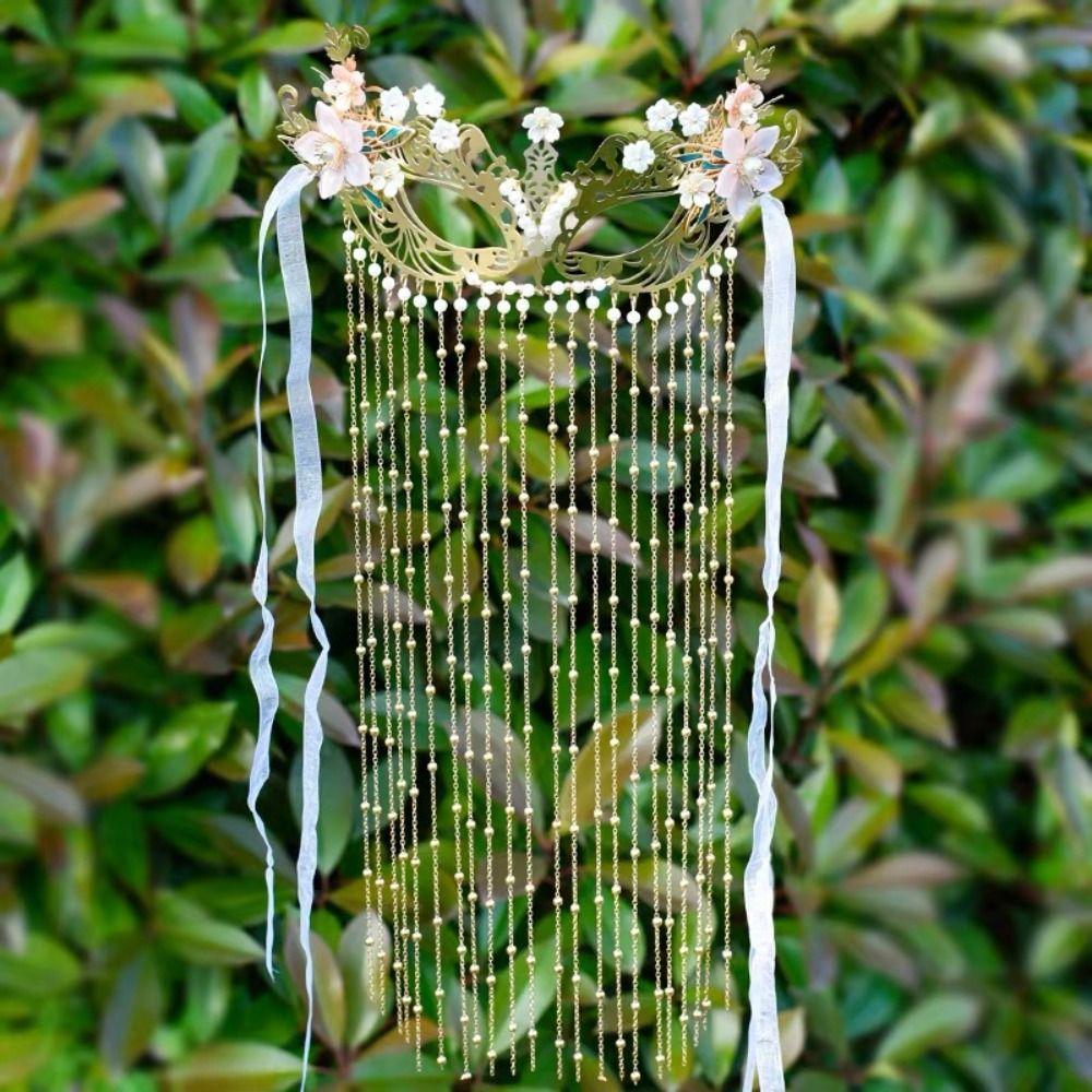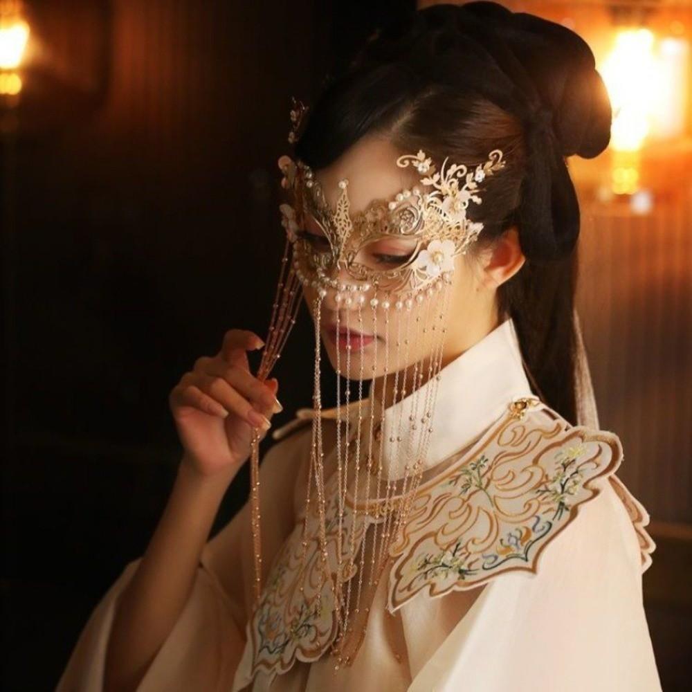 Жемчужная свадебная цепочка для маски Женский таинственный платок Темперамент Анонимная маска для лица Фото