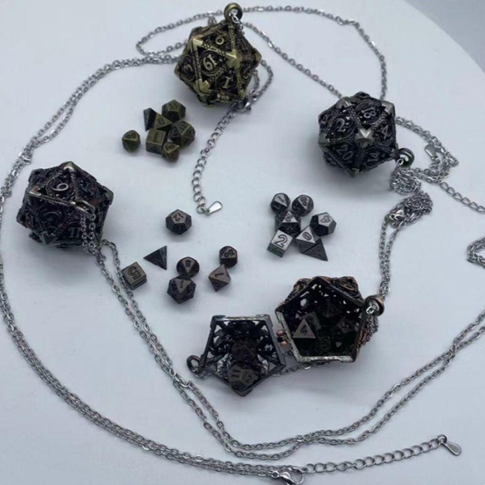 1 Набор TRPG Полый Металлический Кубик Ожерелье 20-гранный Многогранный Кубик Ожерелье RPG Игра