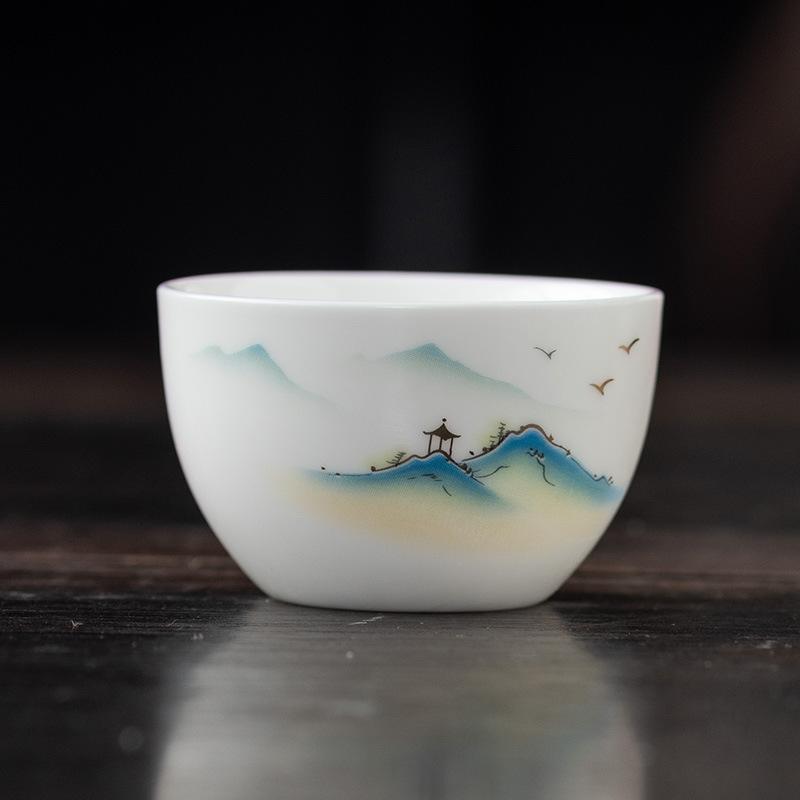 Suet Jade White Porcelain Ice Seed Cup Jade Porcelain Single Cup Set Kung Fu Meditation Cup Master Cup Personal Tea Cup