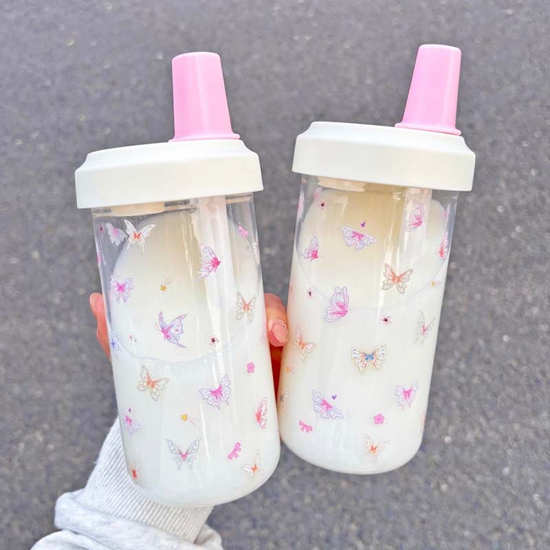 500ML Kawaii Bow Plastic Water Bottle With Straw Summer Bubble Tea Water Cup For Women Students Coffee Pearl Milk Tea Juice Cup