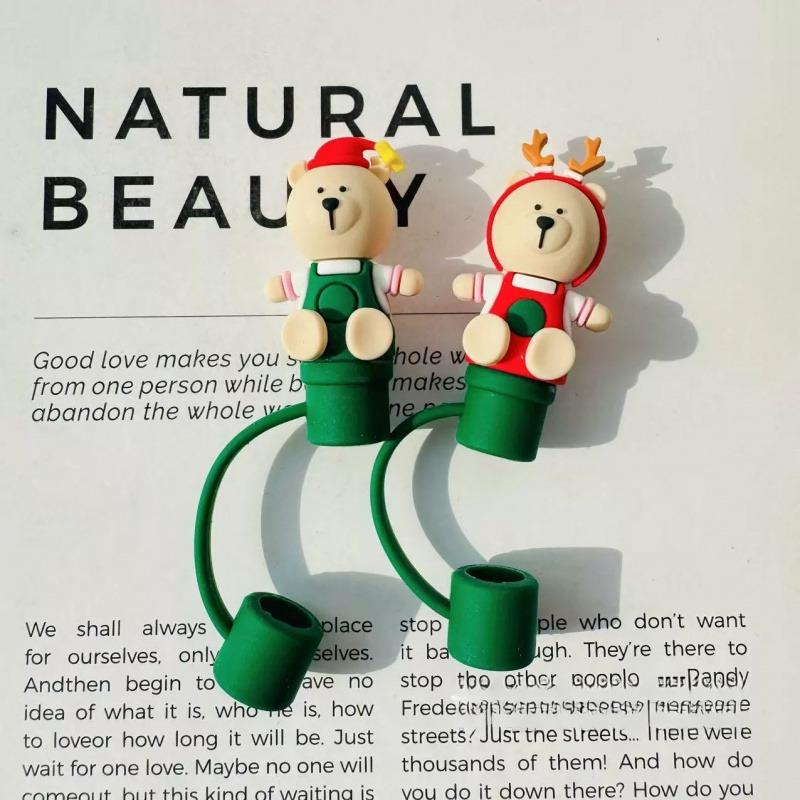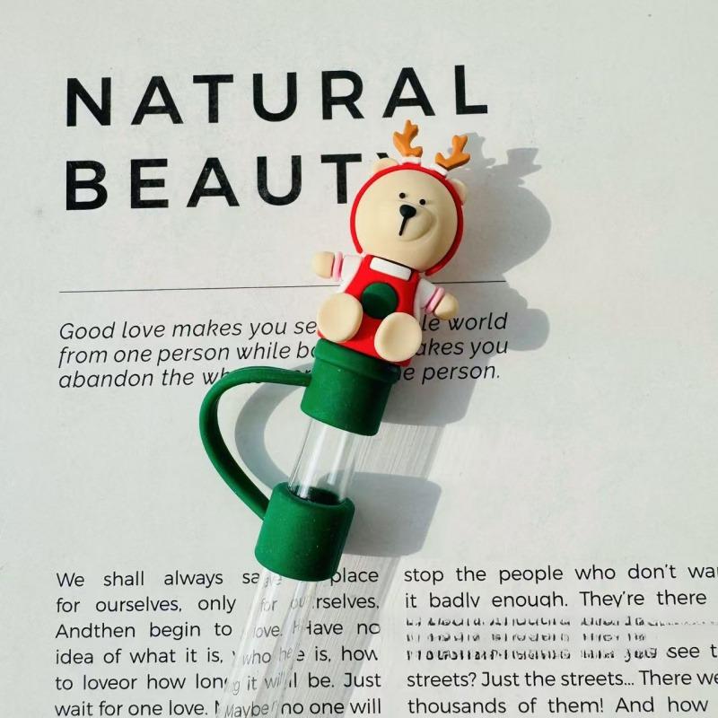 Silicone Straw Cover For Starbucks Tumbler Cup for 7-8mm Heat-resistant Reusable Dust-proof Straw Caps Plug Christmas Decoration