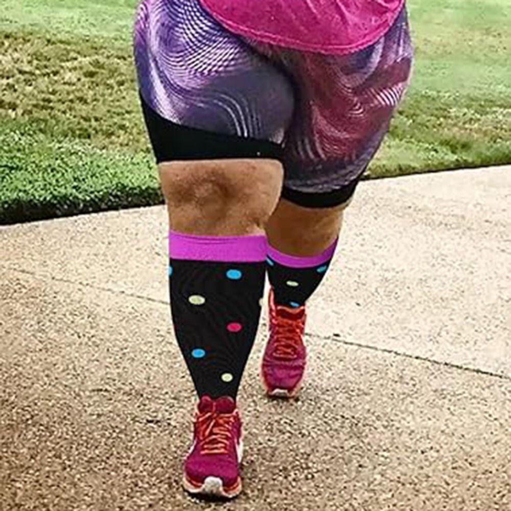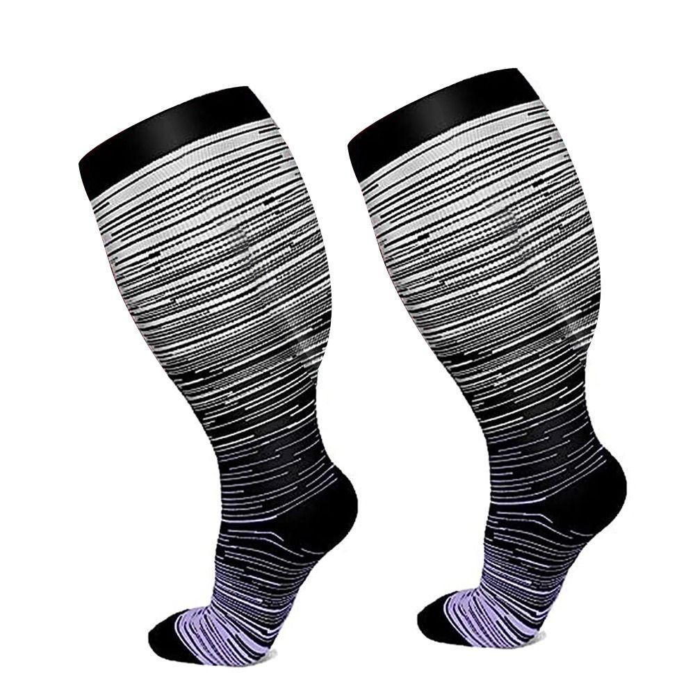 A BOOST FOR YOUR CIRCULATION: Why live with discomfort when you can enhance your performance? Our plus size compression socks promote efficient blood and oxygen flow from your ankles to your heart, energizing your muscles and reducing discomfort. Say goodbye to muscle fatigue, leg swelling, and lactic acid buildup during physical activities. It's time to experience a new level of comfort and performance with our wide calf compression socks.