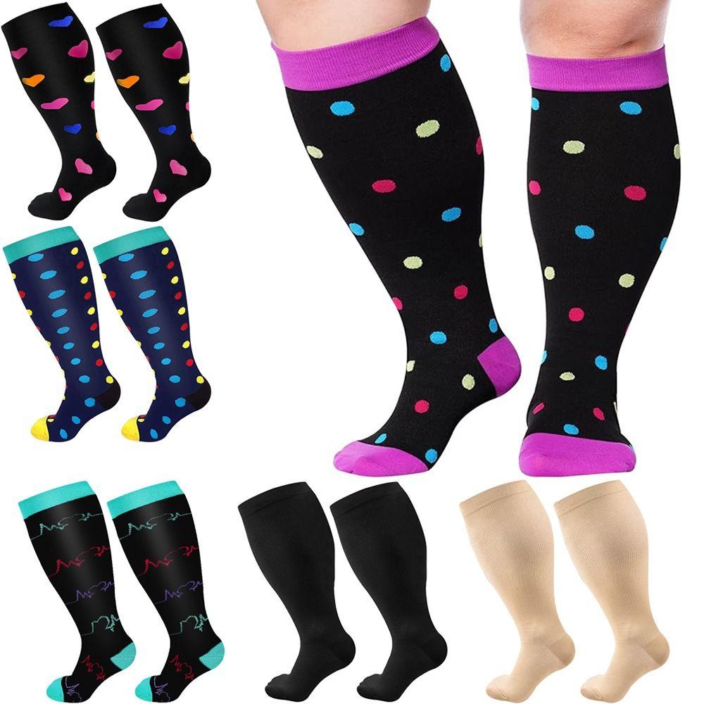 IMPROVE OF FOOT HEALTH: Prioritize your foot health with our plus size compression socks. Lightweight and durable, these socks are designed to wick away moisture, keeping your feet dry and comfortable. Also they can promote better blood circulation and help reduce swelling, offering you a complete comfort solution for your legs and feet. Ideal for mitigating DVT, varicose veins, swelling during flights, pregnancy, and more.