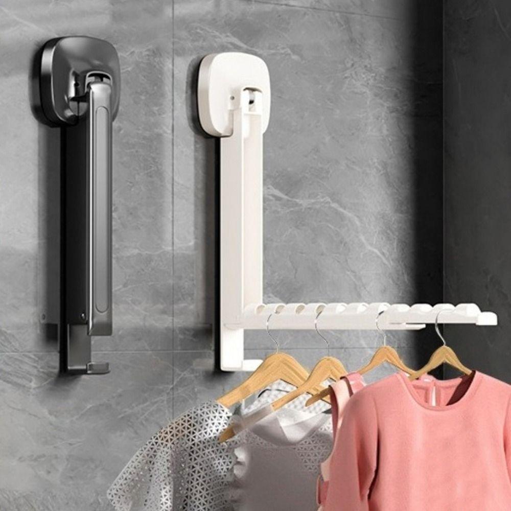 2 Pieces No-drill Installation Suction Cup Clothes Hanger Adjustable Length Laundry Rack for Home